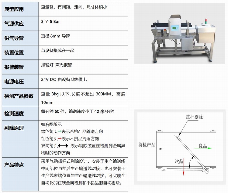 拨杆式剔除装置金属探测机参数尺寸: